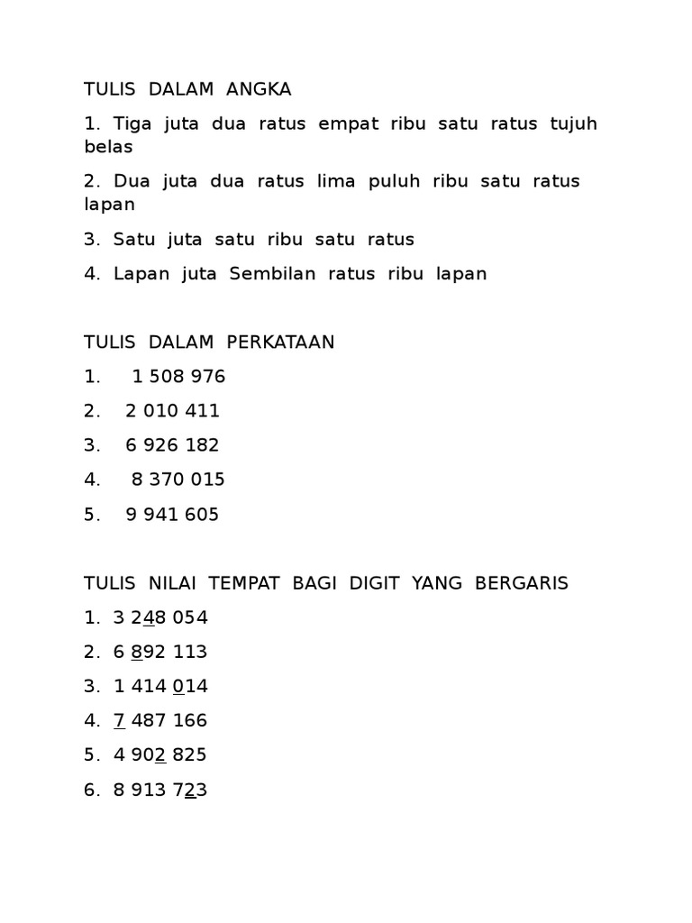 Mengenal Nama Dan Lambang Bilangan Ppt Download from slideplayer.info Episode sebelumnya #15 episode selanjutnya. Mempelajari tentang angka 1 juta akan membantu kita lebih mudah memahami tentang angka tersebut sehingga bisa membaca atau menyebutkan dan 1.200.000 dibaca satu juta dua ratus ribu 3.500.000 dibaca tiga juta lima ratus ribu 7.125.000 dibaca tujuh juta seratus dua puluh lima ribu. Contoh 1 misalnya 860376, satu potongan angka ini saja, kalau mau diganti, dihapus dahulu. Sembilan ratus tujuh trita empat puluh lima dwiyar seratus tujuhpuluh delapan triliyun dua ratus tiga milyar empat ratus enam puluh lima juta delapan ratus sembilan puluh tujuh ribu lima ratus sembilan puluh sembilan rupiah. Bukti pembelian barang seharga rp1.000.000,00 (satu juta rupiah) ke atas harus menggunakan materai 6.000. Bagaimana sobat,mudah bukan,apakah mudah untuk dihafalkan,itu angka jawa yang ditulis dalam mata uang ,biasanya kalau sobat habis makan nasi di warteg apa diwarung jawa,yang ditanyakan pasti jadi total semuanya. Bagas dan eruin sudah berpacaran semenjak mereka berada di bangku sma. Saya lampirkan tanda terima uang sebesar rp900.500,50 (sembilan ratus ribu lima ratus rupiah.